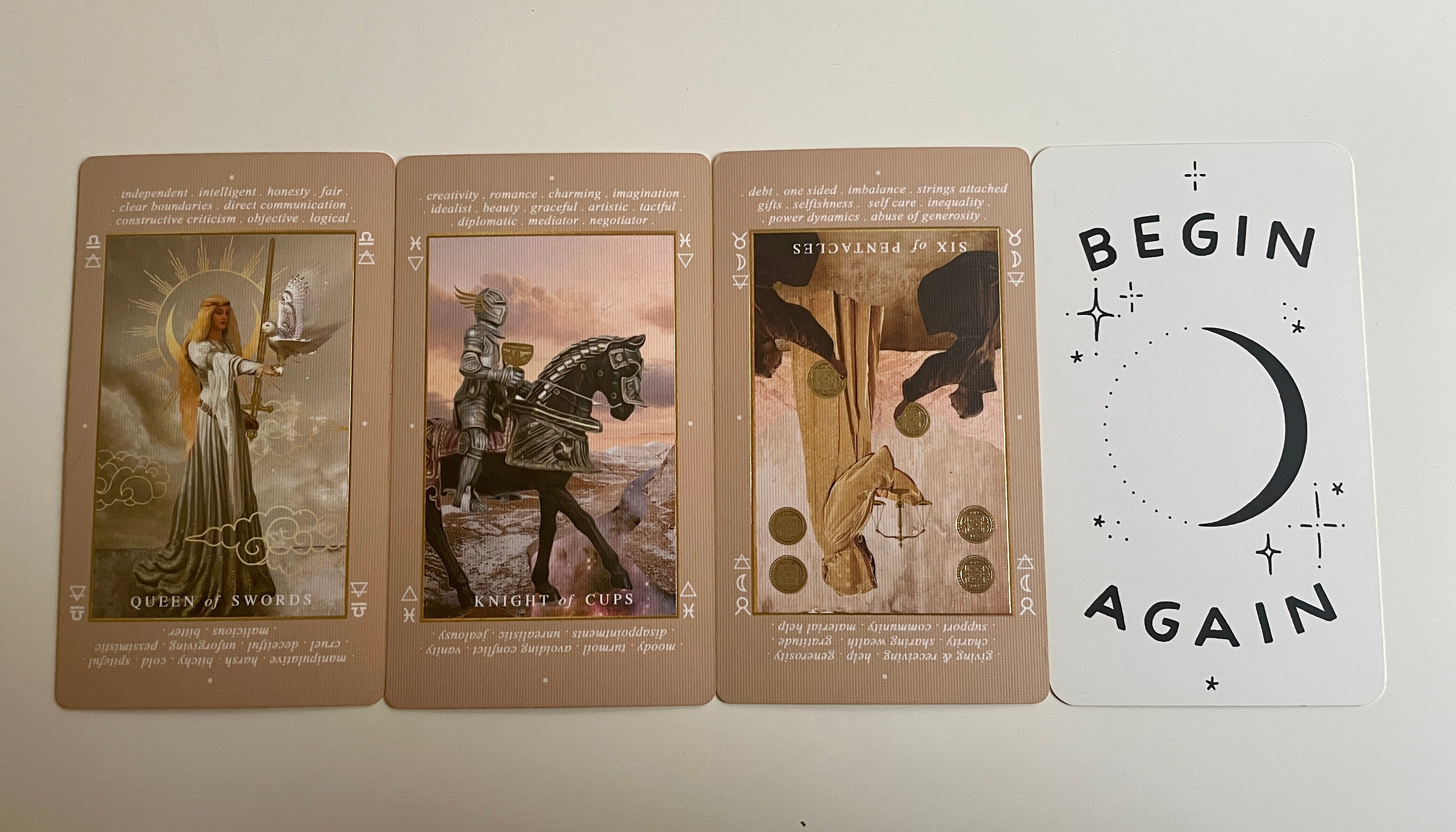 The numerology of this reading is a 9 (I’m including the additional cards in this calculation). In numerology, “the energy of the number 9 represents completion, but not finality. Think of it more in a cyclical sense; it's about the ending of one cycle and the potential it creates for another cycle to begin. The 9 in Numerology acts as an usher in this process of transition or transformation, guiding and empowering us with its wisdom.”